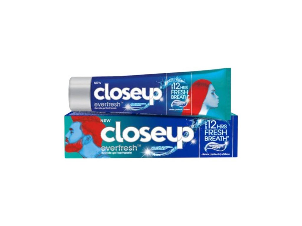 Closeup Everfresh Peppermint Drops zubní pasta přináší výraznou peprmintovou svěžest, která zajišťuje okamžitý pocit čistoty a dlouhotrvající svěží dech. Speciální složení pomáhá účinně odstraňovat zubní plak, chránit zuby před vznikem kazu a podporovat zdraví dásní.